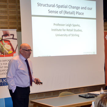 The second key note speaker was the well-known Professor Leigh Sparks, University of Stirling, and he focused on sense of place – specifically retail and the high street crisis.
